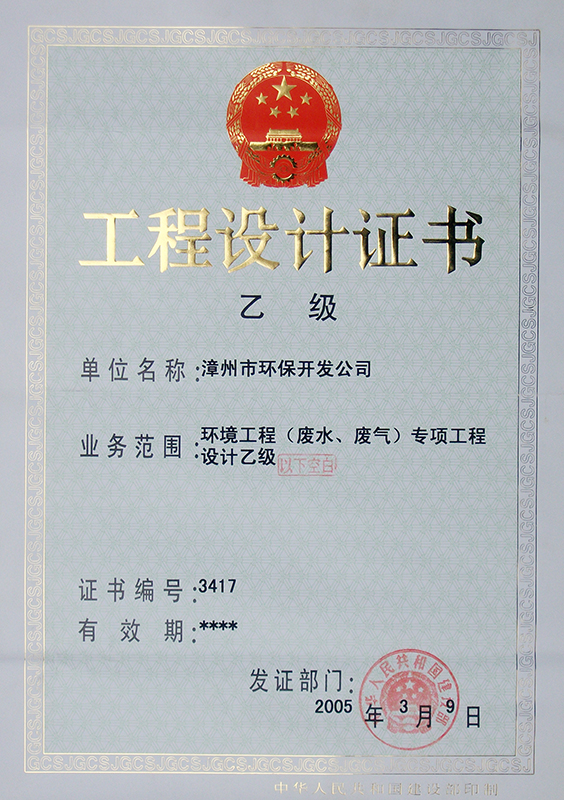 1、環境工程(廢水、廢氣)專項工程設計乙級,證書編號:3417;
